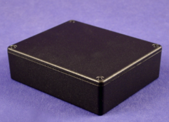 black diecast aluminum enclosure DIECAST BOX 1550 BLACK (4.74 x 3.95 x 1.23) Hammond PN 1550MBK : UPC [623980403847] Color: Black
