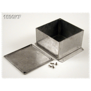 enclosure - diecast 1590K WITH FLANGES (4.92 x 4.92 x 3.11) Hammond PN 1590KF : UPC [623980282831] Color: Natural Aluminum