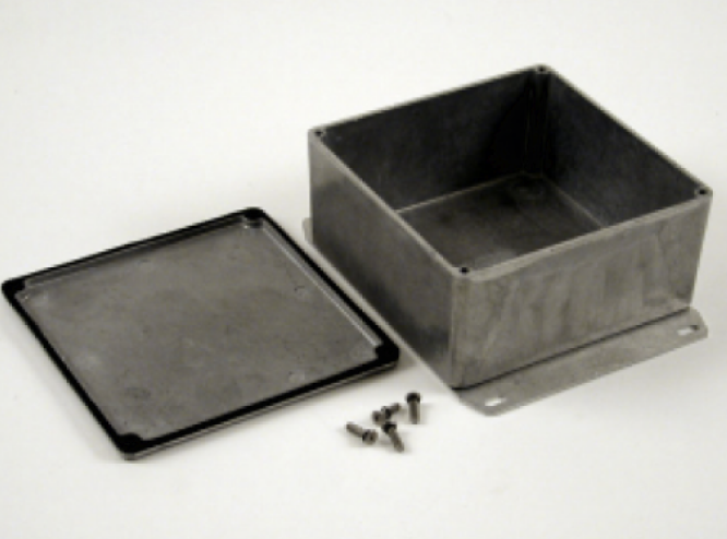 enclosure - watertight diecast 1590U WATERPROOF FLANGED BOX (4.72 x 4.72 x 2.32) Hammond PN 1590WUF : UPC [623980677224] Color: Natural Aluminum