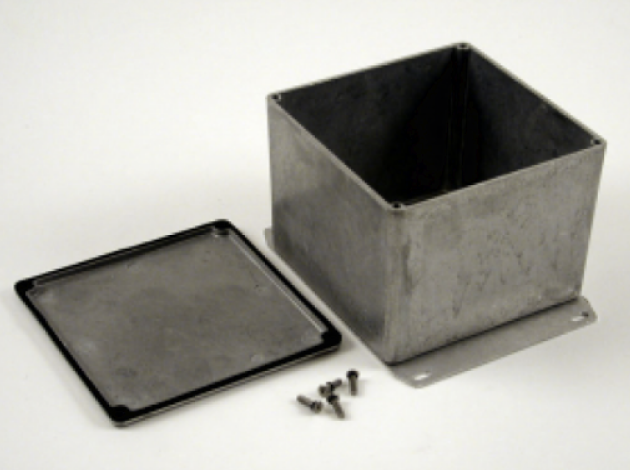 enclosure - watertight diecast 1590V WATERPROOF FLANGED BOX (4.7 x 4.72 x 3.69) Hammond PN 1590WVF : UPC [623980677231] Color: Natural Aluminum