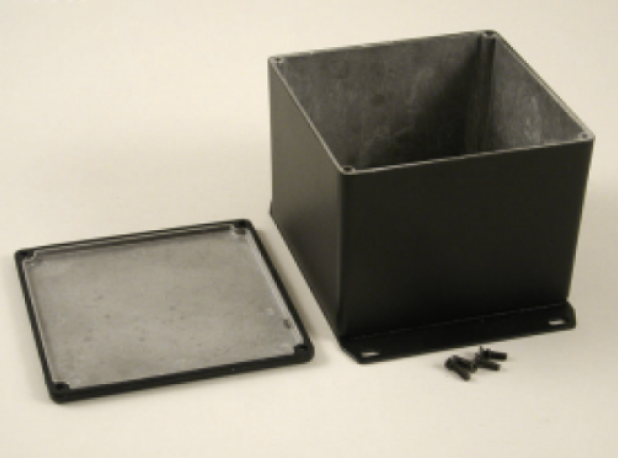 enclosure - watertight diecast 1590V W-PROOF FLNGD BOX BLACK (4.7 x 4.72 x 3.69) Hammond PN 1590WVFBK : UPC [623980677385] Color: Black