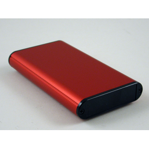 red extruded aluminum enclosure w/ plastic end panels RED 120 X 72 X 19MM ALUM ENCL (4.72 x 2.83 x 0.75) Hammond PN 1455B1202RD : UPC [623980102634] Color: Red
