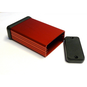 red extruded aluminum enclosure with plastic end panels RED 80 X 54 X 23MM ALUM ENCL (3.15 x 2.13 x 0.91) Hammond PN 1455C802RD : UPC [623980031514] Color: Red