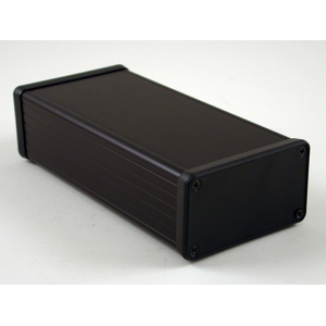 black extruded aluminum enclosure w/ plastic end panels 160 X 78 X 43MM EXTRUDED ENCL (6.3 x 3.07 x 1.69) Hammond PN 1455K1602BK : UPC [623980238319] Color: Black