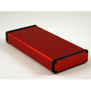 red extruded aluminum enclosure w/ metal end panels RED 103 X 30.5 X 220MM ALUM (8.66 x 4.06 x 1.22) Hammond PN 1455L2201RD : UPC [623980102757] Color: Red