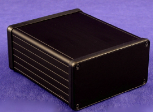 black extruded aluminum enclosure w/ metal end panels 120 X 103 X 53MM EXTRUDED ENCL (4.72 x 4.06 x 2.09) Hammond PN 1455N1201BK : UPC [623980238326] Color: Black