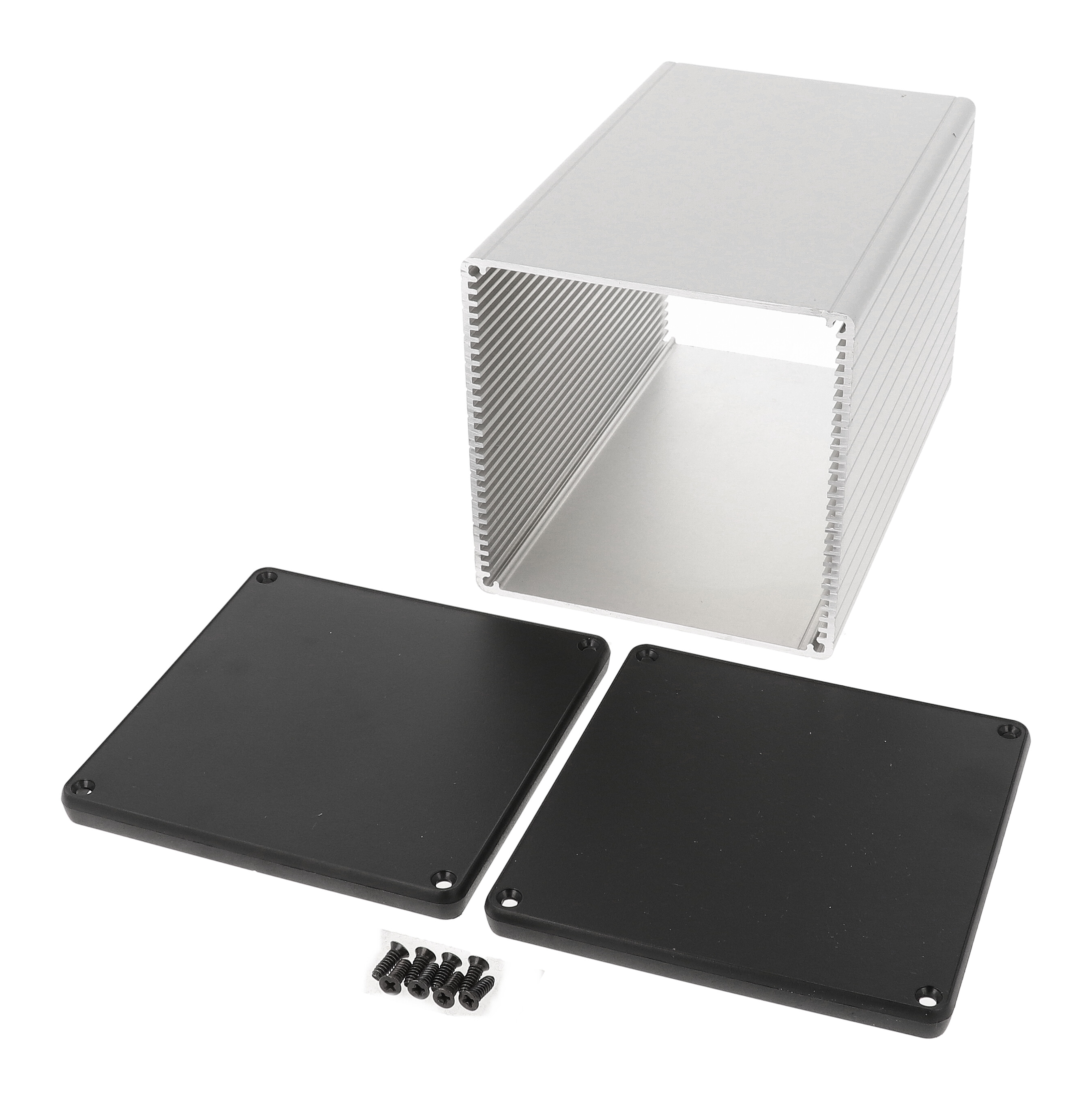 Hammond Raw (6.3 x 4.06 x 4.06) small extruded aluminum enclosure with CLOSED BEZELS Part Number: 1455NS1602 and UPC: 623980223087 .