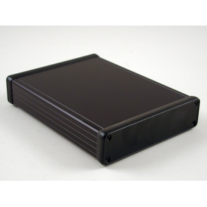black extruded aluminum enclosure w/ plastic end panels 160X125X30.5MM EXTRUDED ENCL (6.3 x 4.92 x 1.22) Hammond PN 1455P1602BK : UPC [623980582726] Color: Black