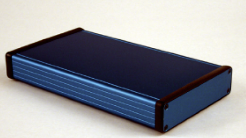 blue extruded aluminum enclosure w/ metal end panels BLUE 220X125X30.5MM ALUM ENCL (8.66 x 4.92 x 1.22) Hammond PN 1455P2201BU : UPC [623980102160] Color: Blue