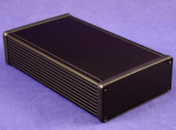 black extruded aluminum enclosure w/ metal end panels 220X125X51.5MM EXTRUDED ENCL (8.66 x 4.92 x 2.05) Hammond PN 1455Q2201BK : UPC [623980582863] Color: Black