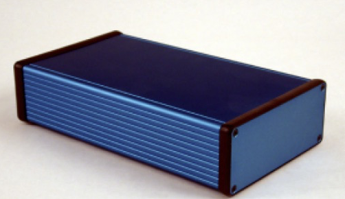 blue extruded aluminum enclosure w/ metal end panels BLUE 220X125X51.5MM ALUM ENCL (8.66 x 4.92 x 2.05) Hammond PN 1455Q2201BU : UPC [623980102184] Color: Blue