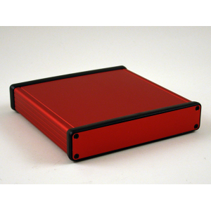 red extruded aluminum enclosure w/ metal end panels RED 165 X 30.5 X 160MM ALUM (6.3 x 6.5 x 1.22) Hammond PN 1455R1601RD : UPC [623980102832] Color: Red