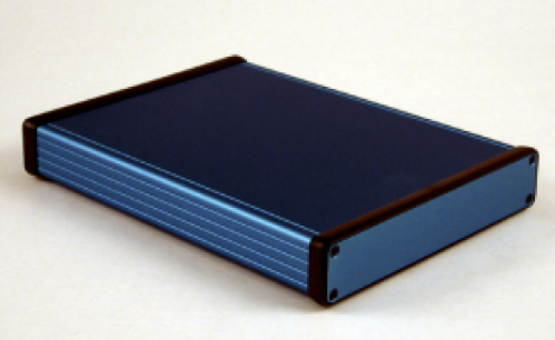 blue extruded aluminum enclosure w/ metal end panels BLUE 165 X 30.5 X 220MM ALUM (8.66 x 6.5 x 1.22) Hammond PN 1455R2201BU : UPC [623980102207] Color: Blue