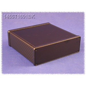 black extruded aluminum enclosure w/ metal end panels 165 X 50.5 X 160MM ALM EXT BK (6.3 x 6.5 x 2.05) Hammond PN 1455T1601BK : UPC [623980514857] Color: Black