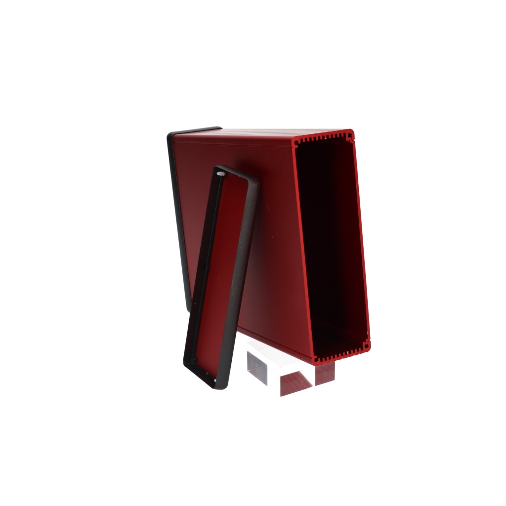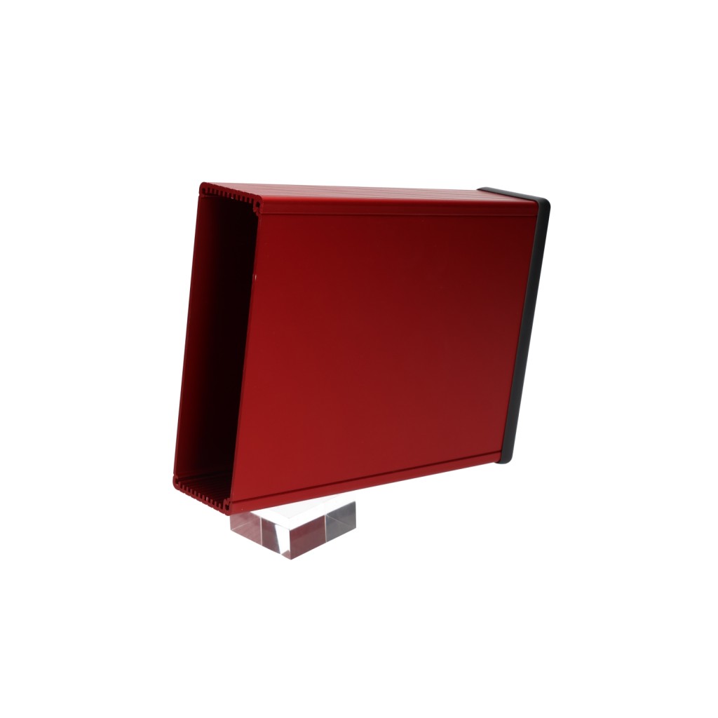 red extruded aluminum enclosure w/ metal end panels RED 165 X 50.5 X 220MM ALUM (8.66 x 6.5 x 2.05) Hammond PN 1455T2201RD : UPC [623980102863] Color: Red