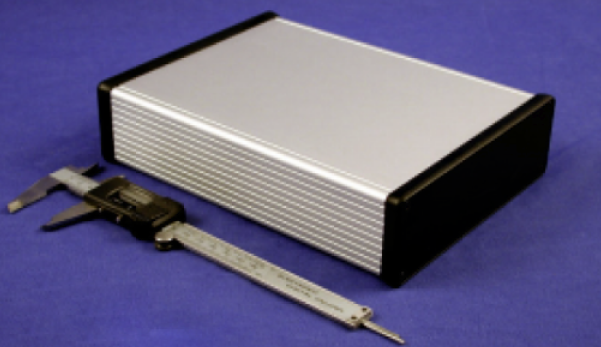 extruded aluminum enclosure w/ plastic end panels 165 X 50.5 X 220MM ALM EXTRUSN (8.66 x 6.5 x 2.05) Hammond PN 1455T2202 : UPC [623980514901] Color: Clear (Anodize)