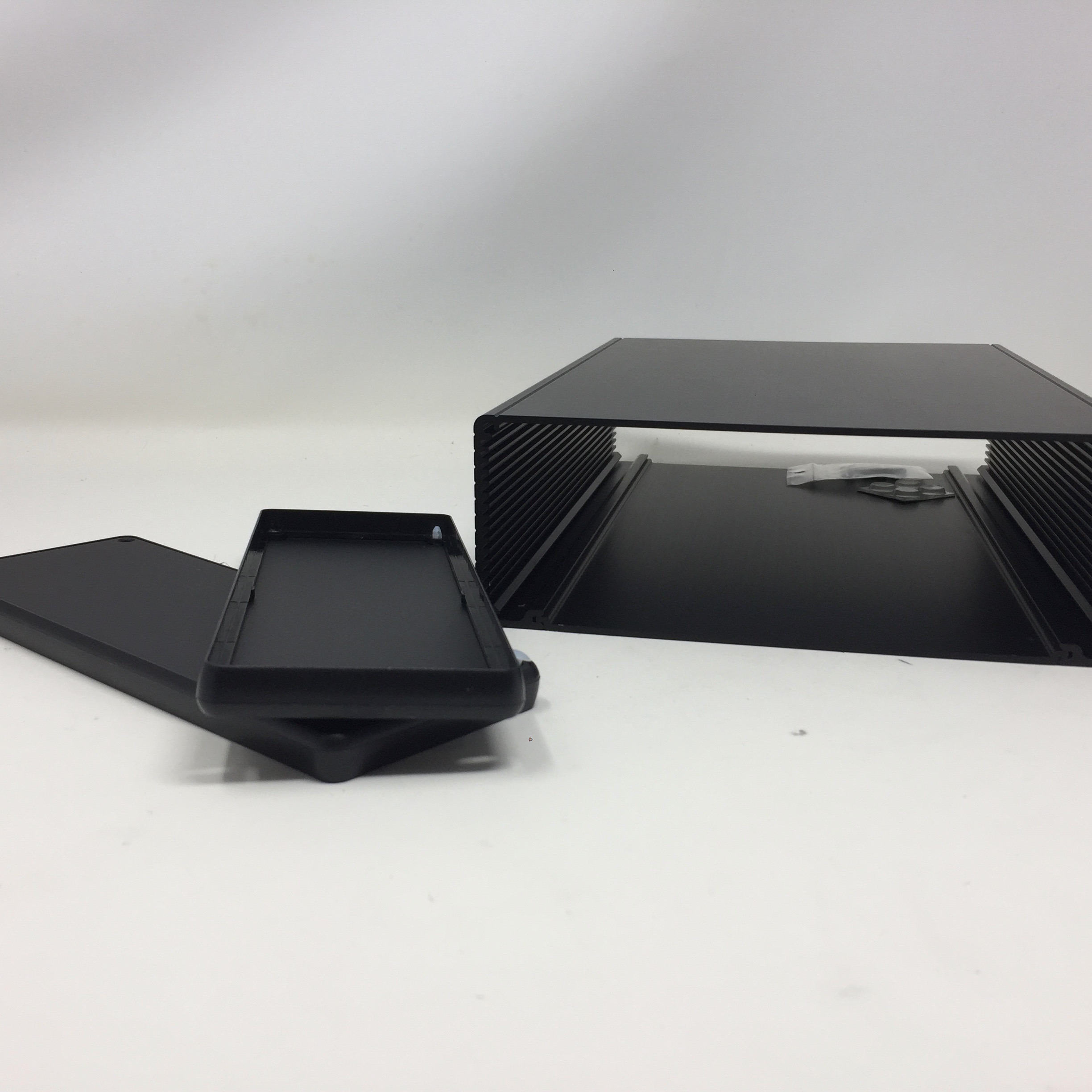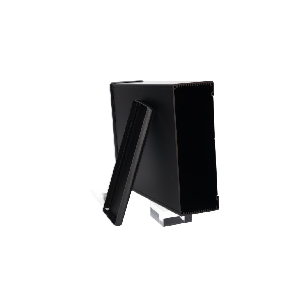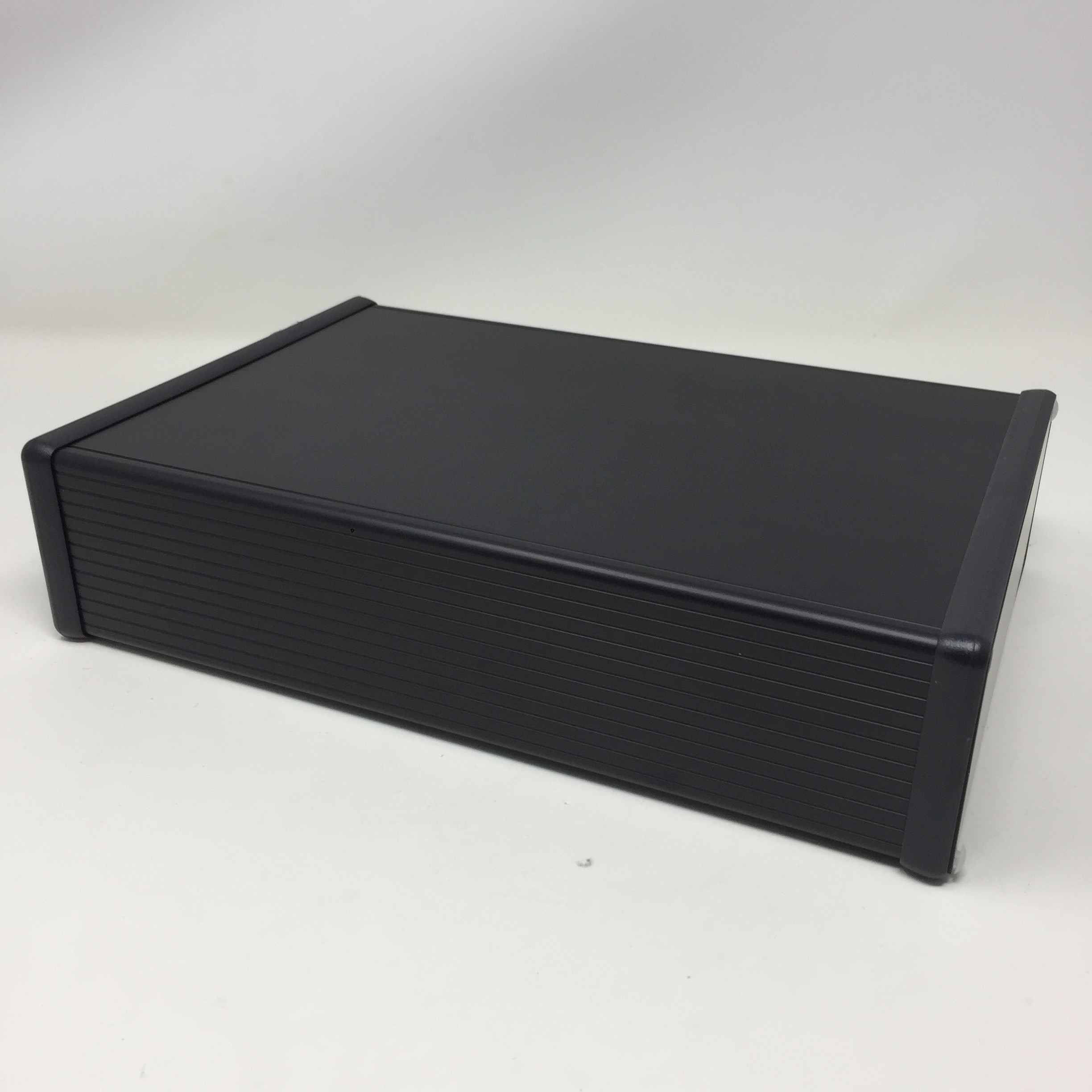 black extruded aluminum enclosure w/ metal end panels 191 X 66 X 280MM ALM EXT BLACK (11 x 7.5 x 2.6) Hammond PN 1455U2801BK : UPC [623980563312] Color: Black