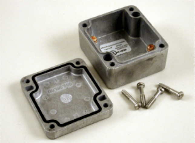 Hammond 2.51 x 2.29 x 1.03 Thick Wall Diecast Aluminum NEMA 4x Natural Finsh Encloure. UL Listed with IP66 Rating, one piece silicone rubber gasket Included.