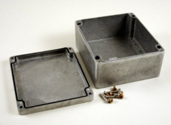Hammond 9.05 x 7.88 x 3.63 Thick Wall Diecast Aluminum NEMA 4x Natural Finsh Encloure. UL Listed with IP66 Rating, one piece silicone rubber gasket Included.
