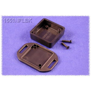 black plastic enclosure with flanged lid 35 X 35 X 15MM BK FLANGED LID (1.38 x 1.38 x 0.59) Hammond PN 1551NFLBK : UPC [623980583174] Color: Black