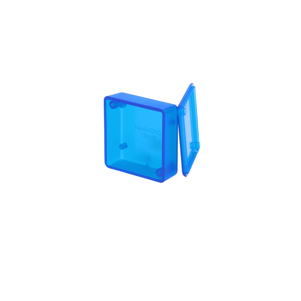 translucent blue plastic enclosure 50 X 50 X 20MM ABS TRANS BLUE (1.97 x 1.97 x 0.79) Hammond PN 1551RTBU : UPC [623980035246] Color: Trans. Blue