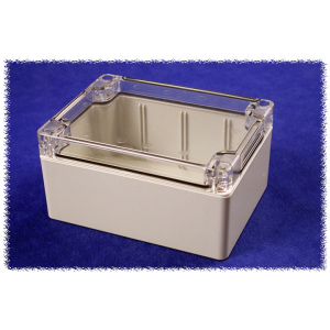 RAL7035 grey polycarb plastic watertight enclosure, clear lid 120X90X60MM P/C NEMA CLR LID (4.7 x 3.5 x 2.4) Hammond PN 1554F2GYCL : UPC [623980304205] Color: Clear