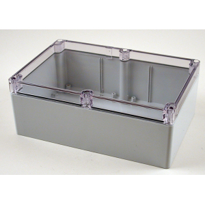 RAL7035 grey polycarb plastic watertight enclosure, clear lid 240X160X90MM P/C NEMA CLR LID (9.4 x 6.3 x 3.5) Hammond PN 1554VA2GYCL : UPC [623980401423] Color: Clear