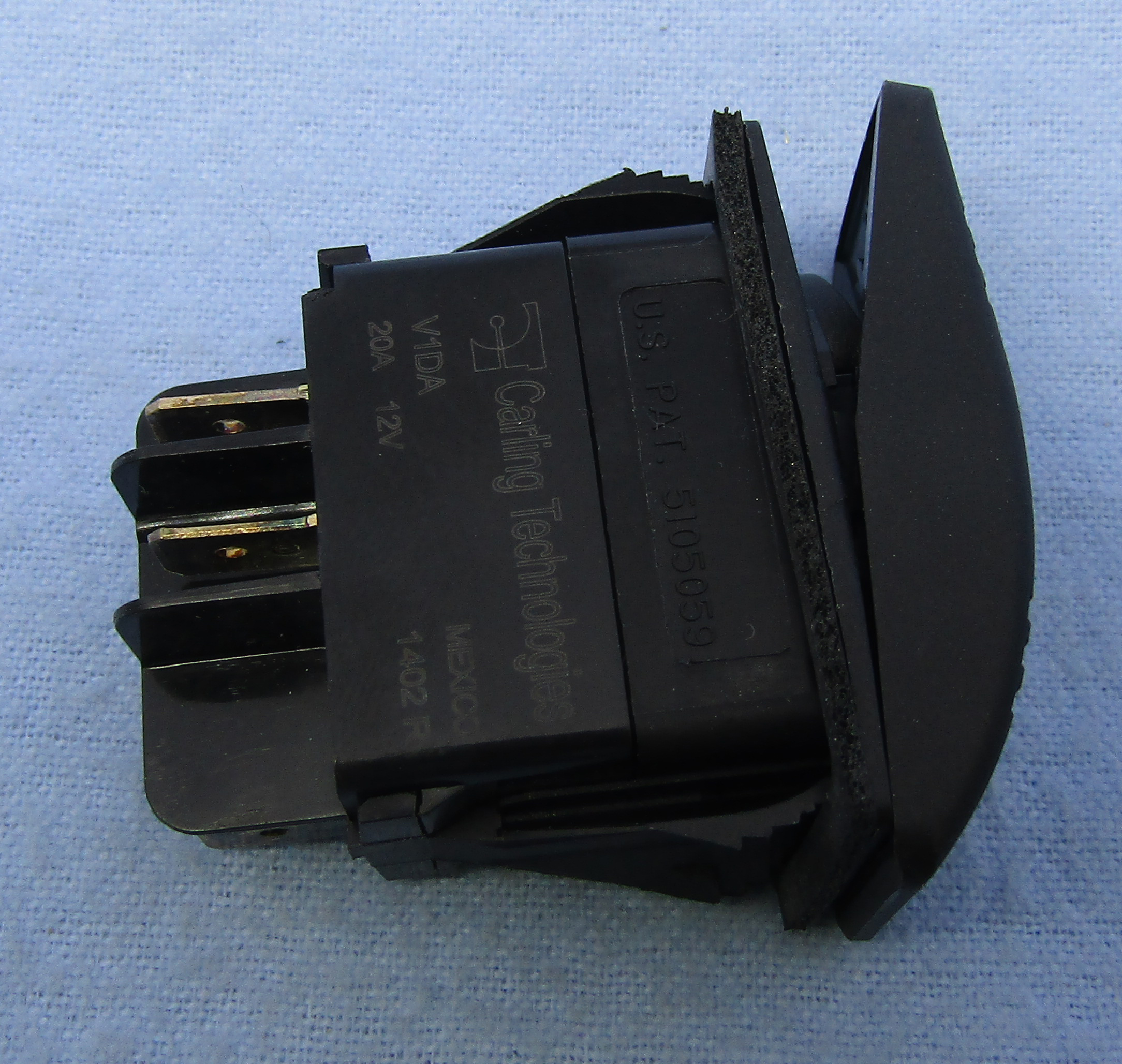 LKG - 30-16515B CARLING PN: VIDAB60C-CTC00-000 Sealed Lighted Rocker Switch SPST, action: on - off, actuator: black with blue lens current rating: 20A @12V DC, IP67 contact material: silver CAD-oxide, silver tin-oxide, fine silver terminal material: brass or copper/silver plate terminal type: .250" quick connect mounting hole: 0.83" x 1.45"