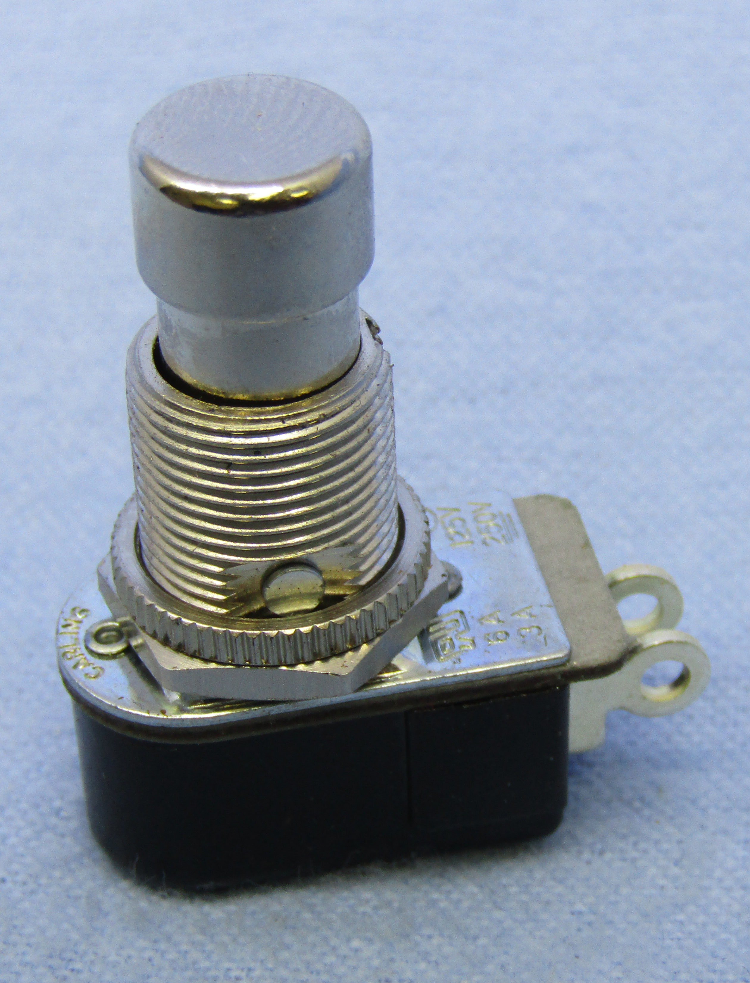 LKG - 30-14348B CARLING PN: 110-P AC/DC Push Button Switch SPST, action: on - off terminal: solder, mounting hole: 0.500" current rating: 6A @ 125V AC, 3A @ 250V AC base material: phenolic actuator & bushing material: brass/nickel plate actuation force: 6-8 lbs.