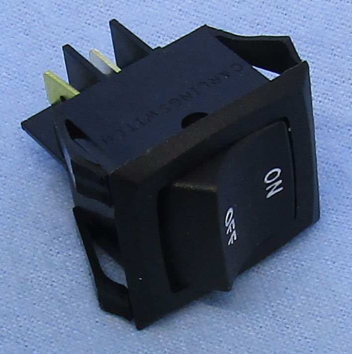 LKG - 30-16625B CARLING PN: RGSCC201-R-B-B-F Heavy Duty Rocker Switch DPST, action: on - off, actuator: black nylon w/on-off legend current rating: 20A @125V AC, 15A @250V AC, 3/4HP @ 125-250V AC base material: nylon terminal type: .250" quick connect mounting hole: 0.872" x 1.072"