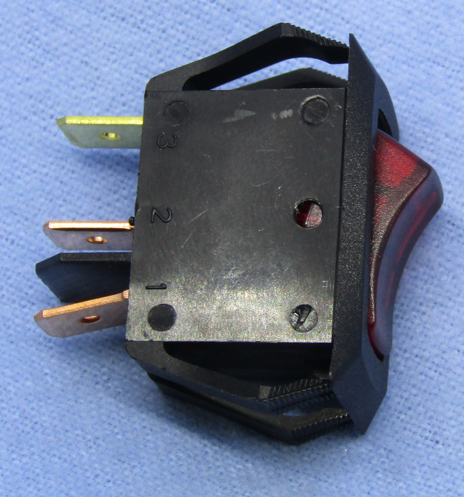 LKG - 30-16740B CARLING PN: LRA911-CR-B/250N Lighted Rocker Switch SPST, action: on - off, actuator: translucent nylon current rating: 16A @ 125V AC, 10A @ 250V AC contact & terminal material: copper alloy terminal type: .250" quick connect mounting hole: 1.125" x 0.550" neon light @110V AC