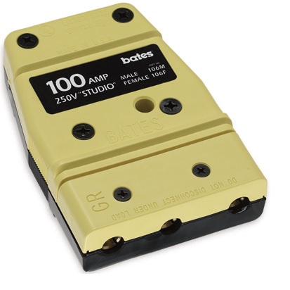 Bates Stage Pin (100A / 250V) Female Inline; For 30 years, Bates stage pins have been the industry standard for stage lighting devices. Our Bates connectors are manufactured from a extreme temperature tolerant thermoplastic compound. This thermoplastic performs in extreme temperatures and is highly durable and resilient to punishing impacts. Bates stage pin connectors offer years of reliable service in the most demanding environments. Our pins are crafted from solid brass rod machined to +/- 0.