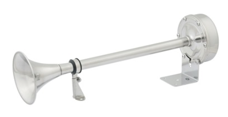 24V Single Trumpet Electric Horn; Marinco is the leading supplier of horns to the marine industry, with over fifty years of experience in designing and manufacturing sound devices specifically for use in harsh marine environments. Stainless steel is used for all critical components such as trumpets, motor cover, diaphragms, assembly and mounting hardware. In the case of the XLP trumpet horns, the horn is given extra protection through the complete over-molding of the internal motor cover housin