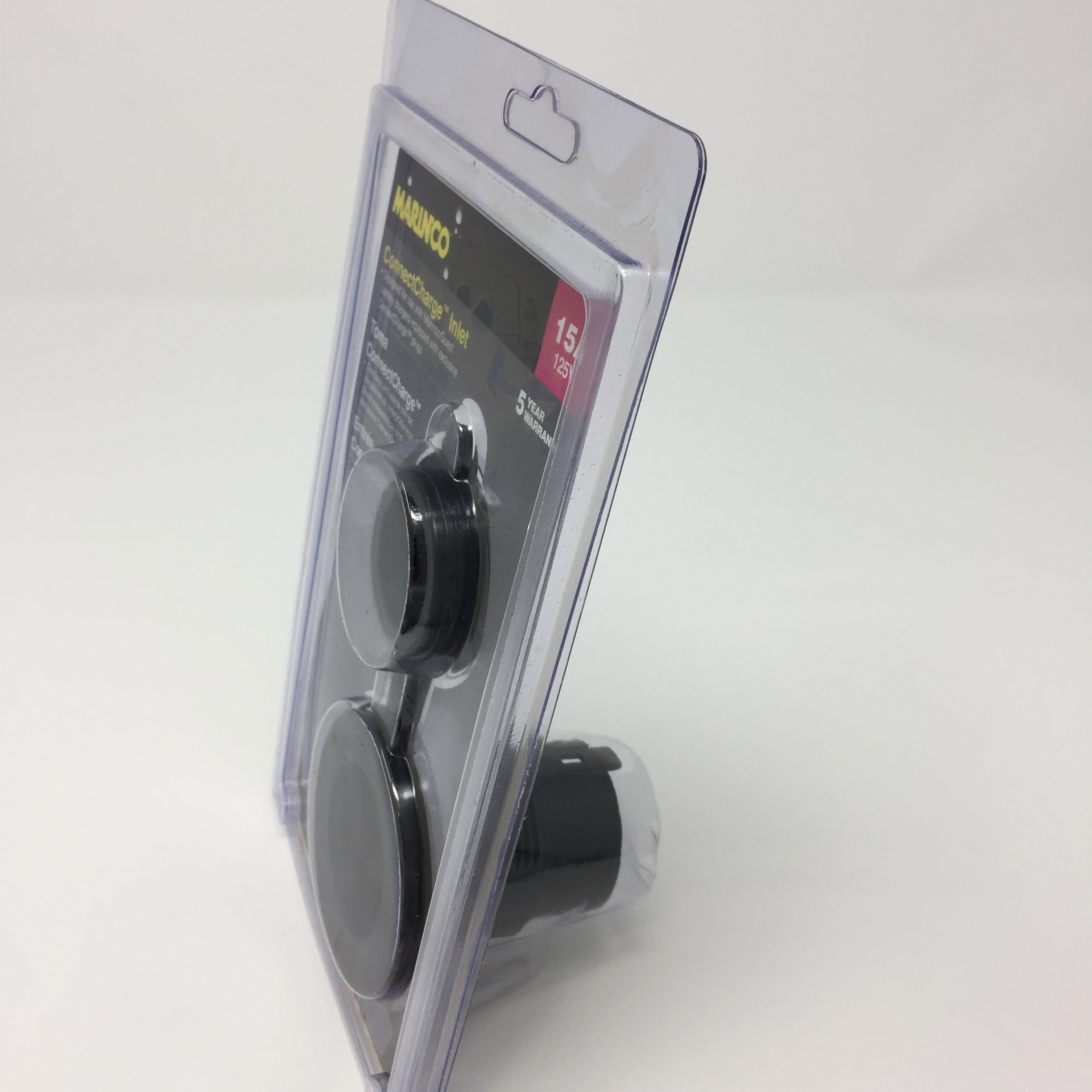 Connect Charge, Frnt/Rear Mount with PVC Cover; The Marinco Connect-Charge inlet is a receptacle designed to accept plug-in Guest ConnectCharge on-board battery chargers. This model features universal mounting: use three screws through the faceplate to mount it from the front or use a threaded locking ring to mount it to the dash from the rear. The watertight lid snaps closed to protect the AC plug.