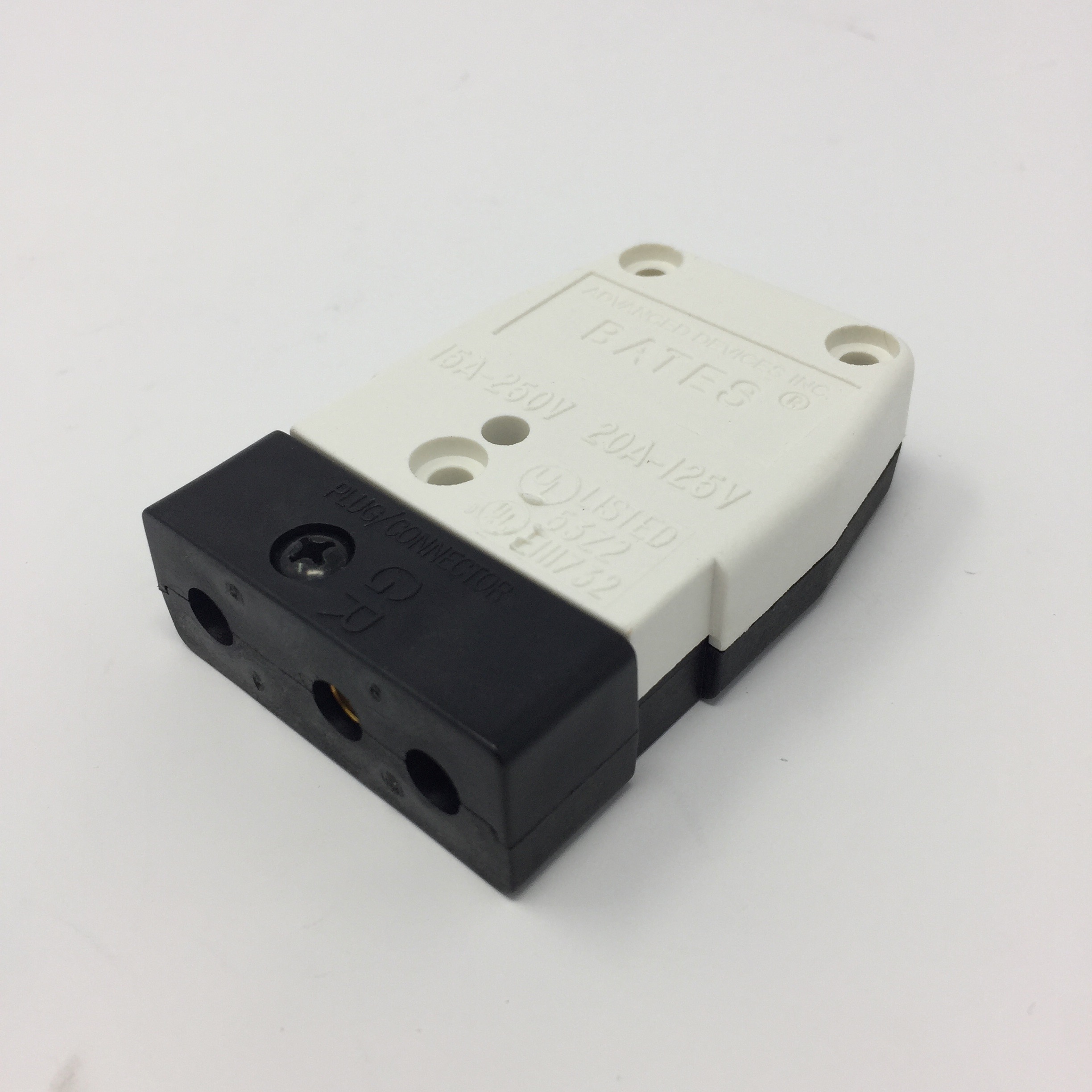 Bates Stage Pin (20A / 125V) Female Inline - White (B) Cover; For 30 years, Bates stage pins have been the industry standard for stage lighting devices. Our Bates connectors are manufactured from a extreme temperature tolerant thermoplastic compound. This thermoplastic performs in extreme temperatures and is highly durable and resilient to punishing impacts. Bates stage pin connectors offer years of reliable service in the most demanding environments. Our pins are crafted from solid brass rod m