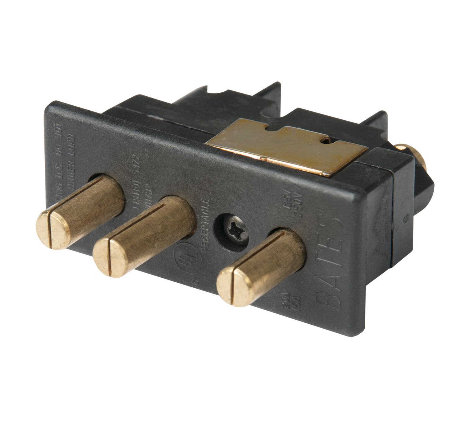 Bates Stage Pin (20A / 125V) Male Panel Mount; Accepts #10 or #12 AWG Wire