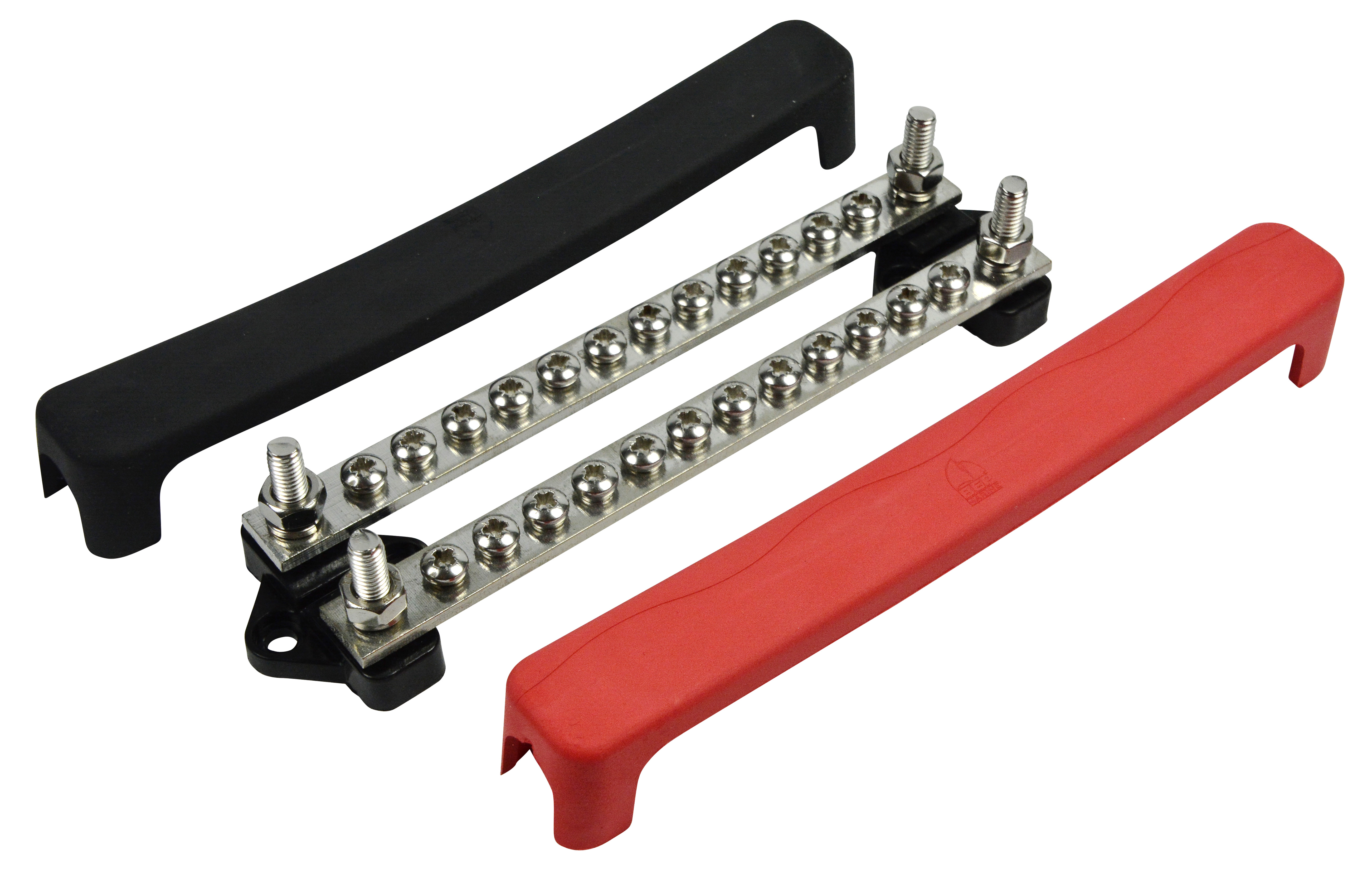 Multi Purpose Bus Bar, 12 Way/100A x 2 (with covers); BEP bus bars include tin-plated, brass-insulated mounting bases and flame-resistant flexible plastic covers. The covers are color-coded for polarity and feature a unique push-on fit.