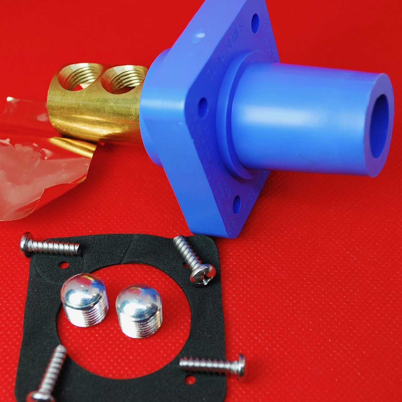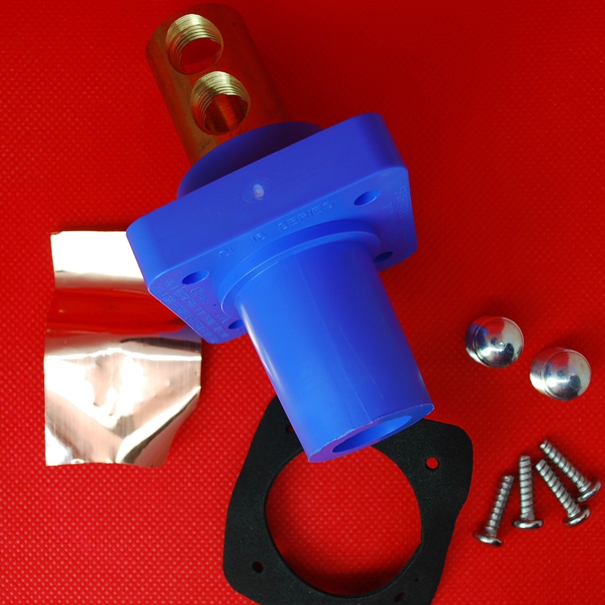 CL 16 Series Panel Mount (400A / 600V) #2 - 2/0 AWG; Double Set Screw; Female - Red (C ); CL panel mount devices are constructed of super tough nylon housing which will not chip or crack under extreme temperatures and impact conditions. The unique mounting system permits the use of self-tapping stainless screws. No lock washers or nuts to try and hold during assembly.