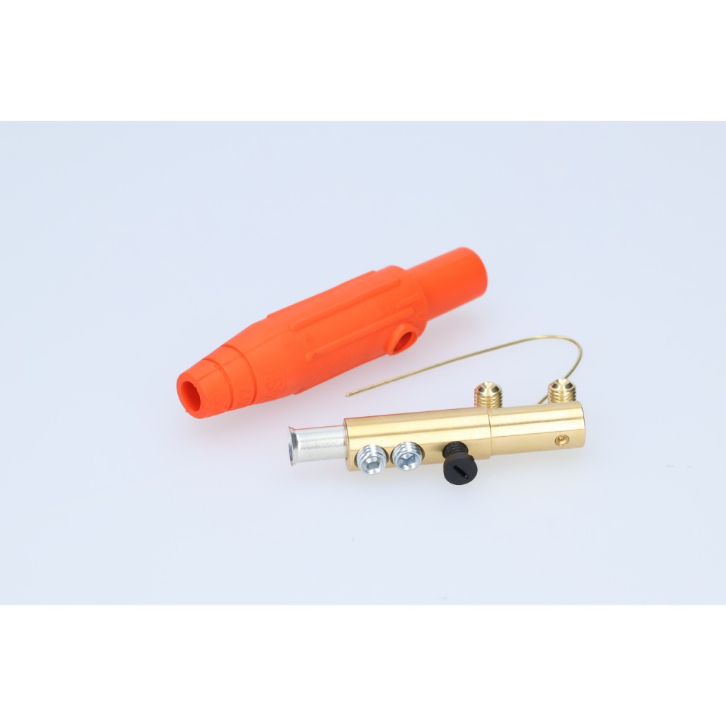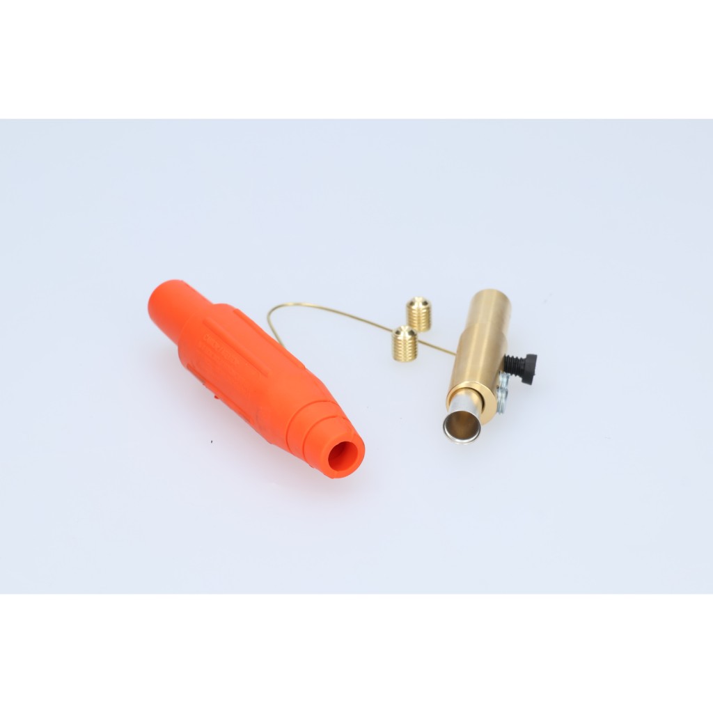 CLM Series Inline Single Pin Connectors (150A / 600V) #8 - #2 AWG Female - Orange (G); CLM Series inline connectors have a non-conductive retaining screw which passes through the metal contact and fastens at both ends to the retaining ring, providing maximum resistance to excessive torque loading.