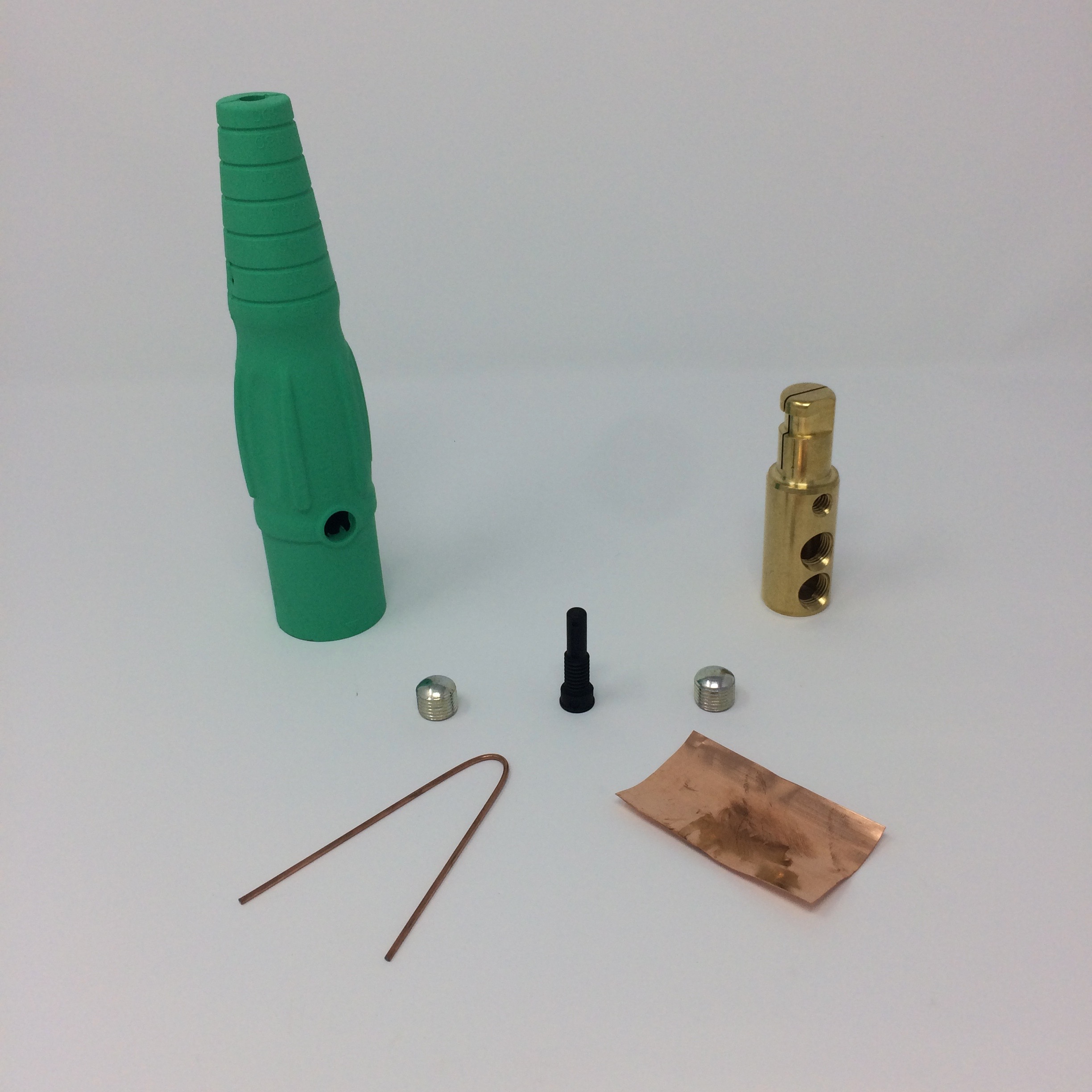 CLS 16 Series Inline Single Pin Connector(400A / 600V) 2/0 - 4/0 AWG Male - Green (E); CLS Series inline connectors have an ergonomic grip that gives the user maximum control during mating and removal. A non-conductive retaining screw passes through the brass contact and fastens at both ends to the retaining ring, providing maximum resistance to excessive torque loading. Alignment arrows make mating easier.