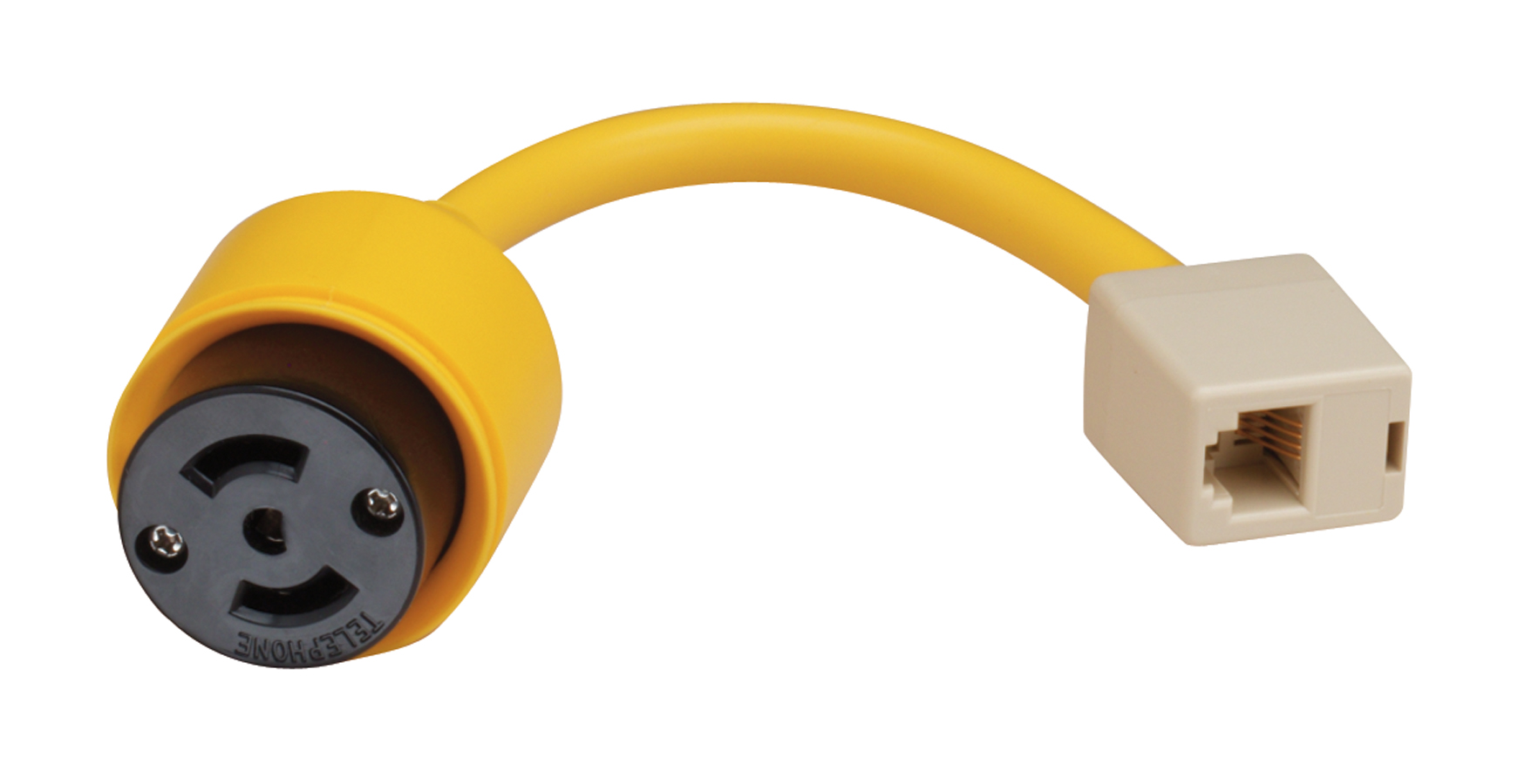 Telephone to Locking Type Inlet Adapter; Use this adapter to hook up a locking type inlet to a modular telephone connection.