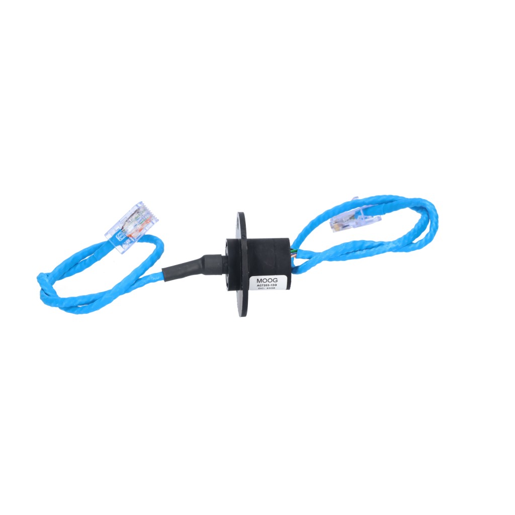 Moog Compact 0.87 Inch Diameter Ethernet Capsule Slip Ring with 1 @ 1000BaseT (Gigabit) Ethernet circuits and precision ball bearing design with gold on gold contacts. This capsule is Plastic with Overall Dims of Flange Dia. 1.75 - Capsule Dia 0.87 - Capsule Depth 0.84 and has 12 Inch Lead Length wires. Operating Speed up to 250 RPM Not Sealed Flanged