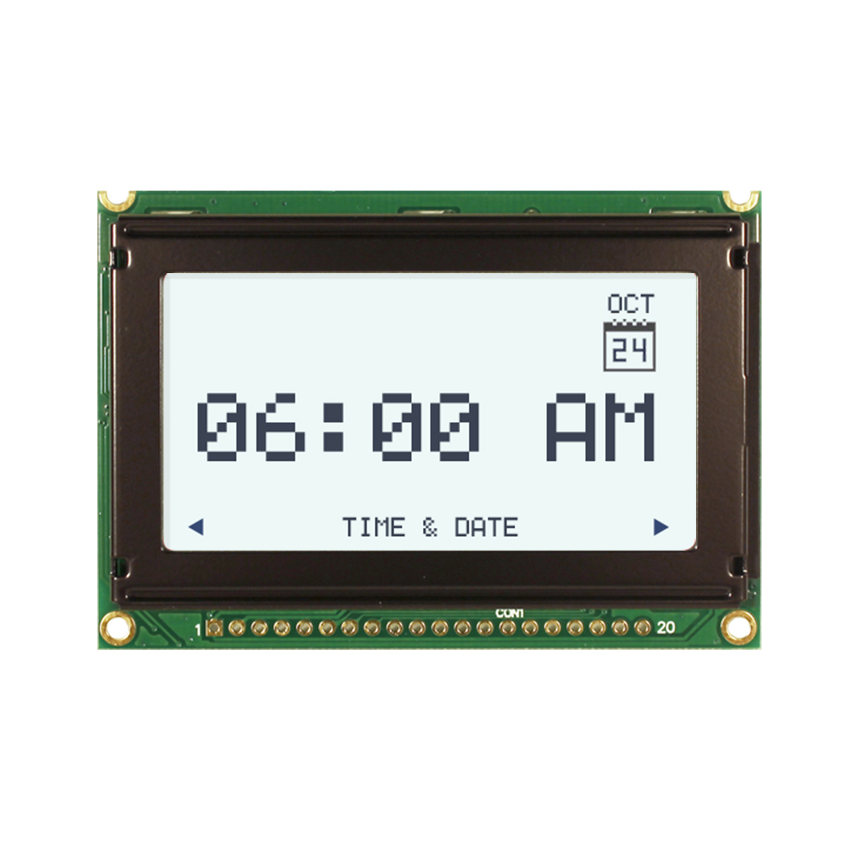 Newhaven 128 x 64 Pixels Transflective LCD Graphic Display @ 5V and 8-Bit Parallel Interface with 1x20 Bottom Connector and KS0108 Controller. PN - NHD-12864WG-BTFH-V#N