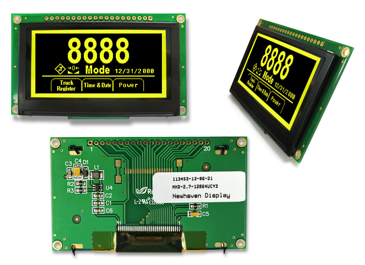 DISCONTINUED NewHaven 128 x 64 pixels Graphic OLED Display with Yellow Display Mode and 8-bit Parallel/SPI Interface. Uses 3V Voltage.