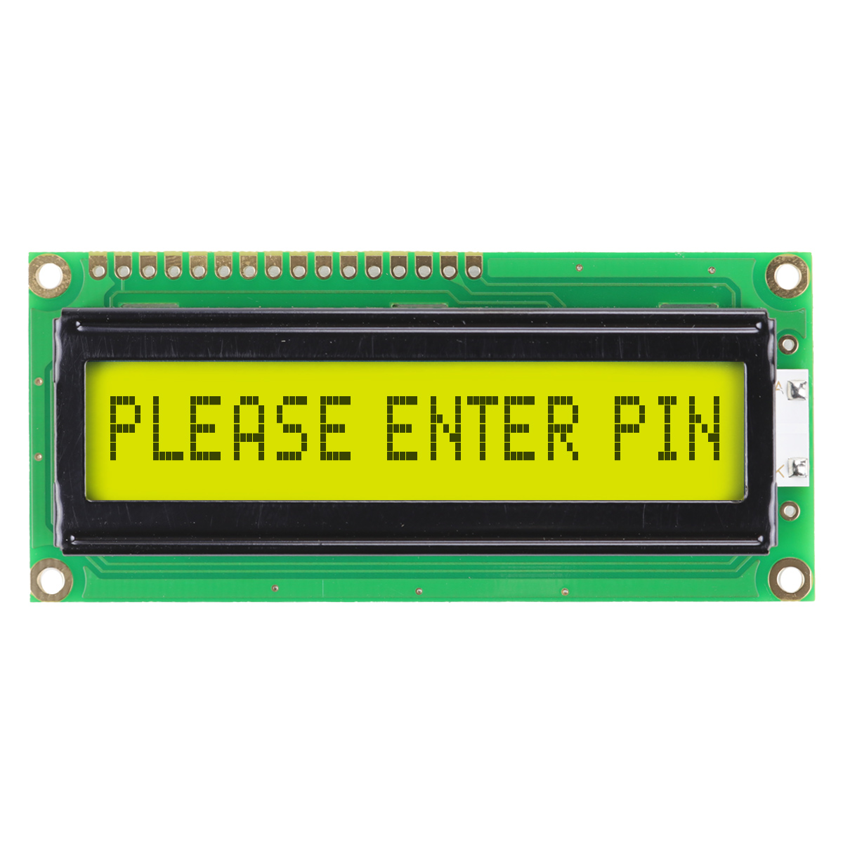Newhaven 1 x 16 Characters Transflective LCD Character Display @ 5V and 8-Bit Parallel Interface with 1x16 Top Connector and SPLC780D OR ST7066U Controller. PN - NHD-0116AZ-FL-GBW