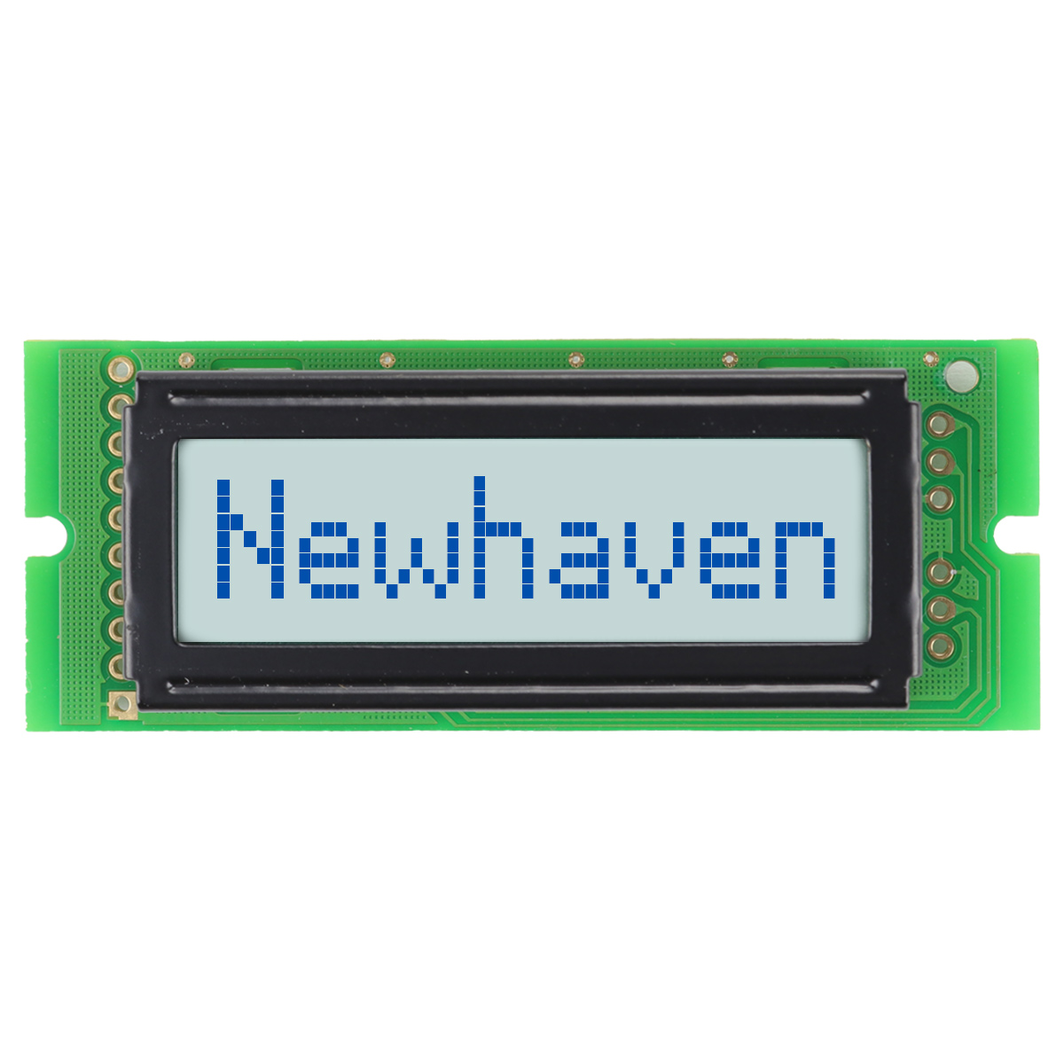 Newhaven 1 x 8 Characters Transflective LCD Character Display @ 3.3V and 8-Bit Parallel Interface with 1x10 Left Connector and SPLC780D OR ST7066U Controller. PN - NHD-0108CZ-FSW-GBW-33V3