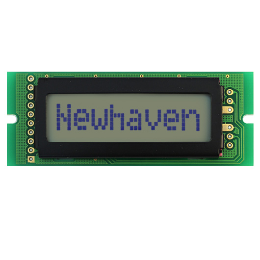 Newhaven 1 x 8 Characters Reflective LCD Character Display @ 5V and 8-Bit Parallel Interface with 1x10 Left Connector and SPLC780D OR ST7066U Controller. PN - NHD-0108CZ-RN-GBW