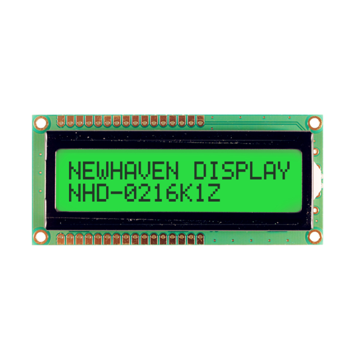 Newhaven 2 x 16 Characters Transflective LCD Character Display @ 5V and 8-Bit Parallel Interface with 1x16 Top/Bot Connector and SPLC780D OR ST7066U Controller. PN - NHD-0216K1Z-FSPG-FBW-L