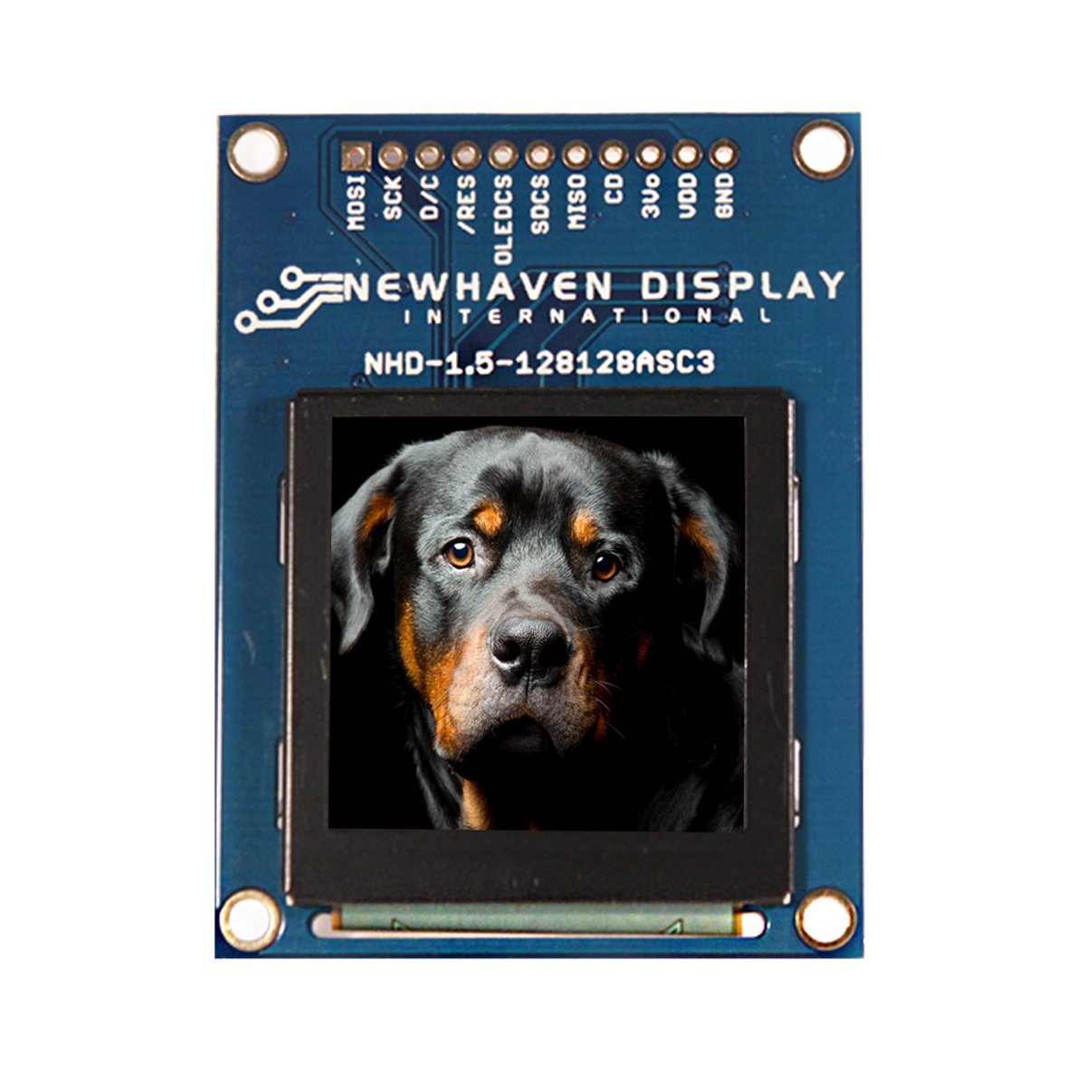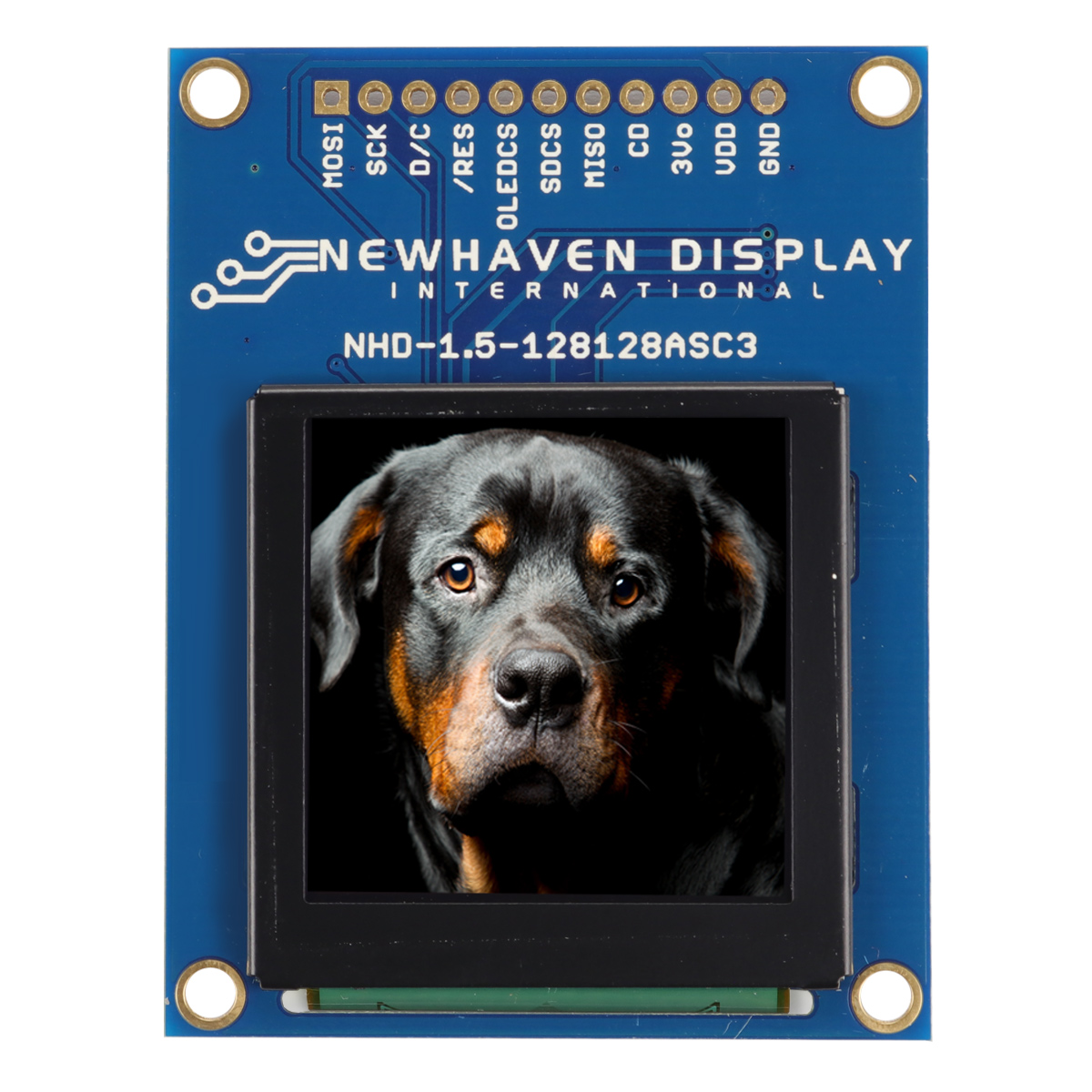 Newhaven 128x128 262K Serial Color OLED @ 3.3-5V and SPI MPU Interface with 1x11 2.54mm pitch header Connector and SSD1351 Controller. PN - NHD-1.5-128128ASC3