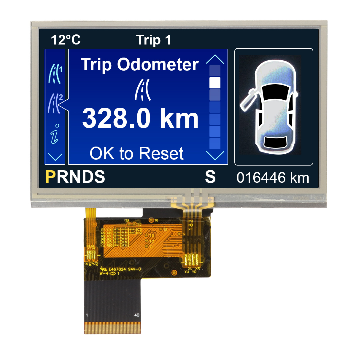 Newhaven 4.3 Inch IPS TFT w/ Resistive Touch Display with Display Format 480 x 272 Screen Diagonal Size 4.3 Inches Using 24-bit RGB Interface Full Part Number: NHD-4.3-480272EF-ASXP-T